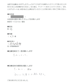 ■治療を終えて一言お願いします。すっきりしました。
